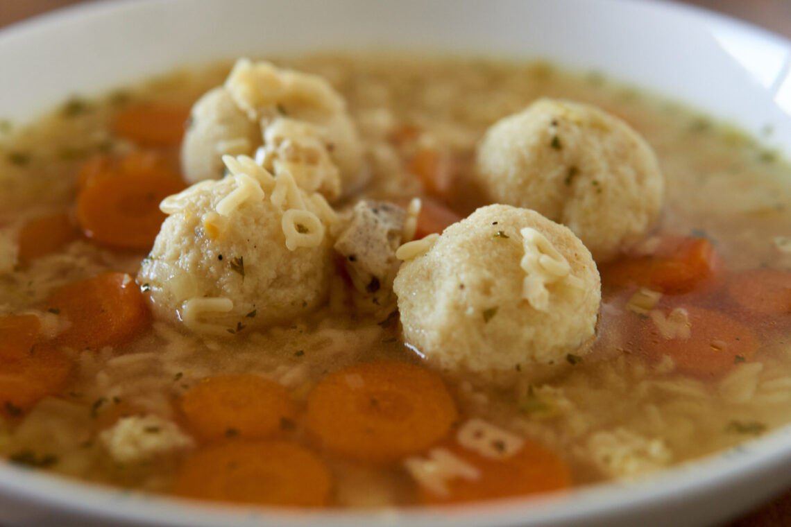 Die genaue Zusammensetzung einer Hochzeitssuppe ist stark regional abhängig. Hier mit Eierstich, Grießklößchen und Suppennudeln.